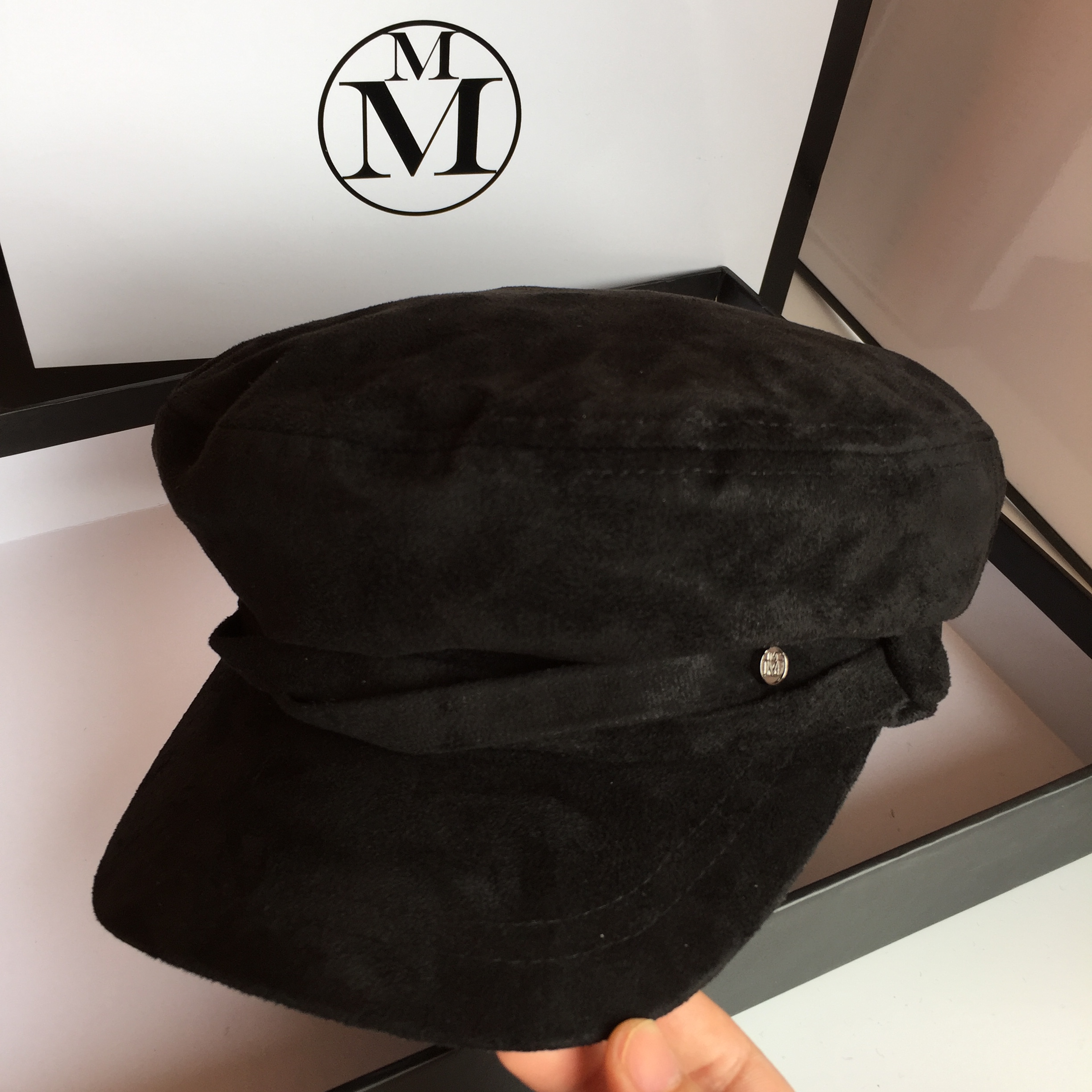 French custom autumn and winter new M alphabet deer piece corner hat female EnglishParis newspaper child hat shopping painter hat