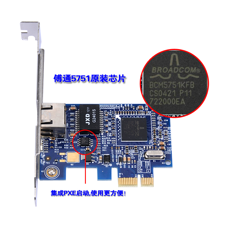 Gigabit network card Broadcom BCM5751 server desktop diskless PXE boot PCI-E Gigabit network card