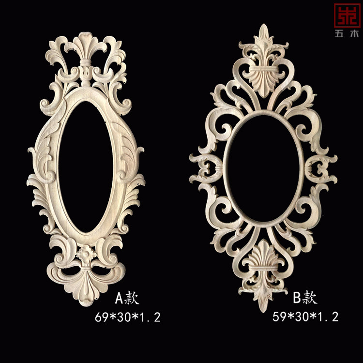 Dongyang wood carving European style wooden door applique with flower furniture cabinet door applique with flower solid wood carved background wall decorative door core applique