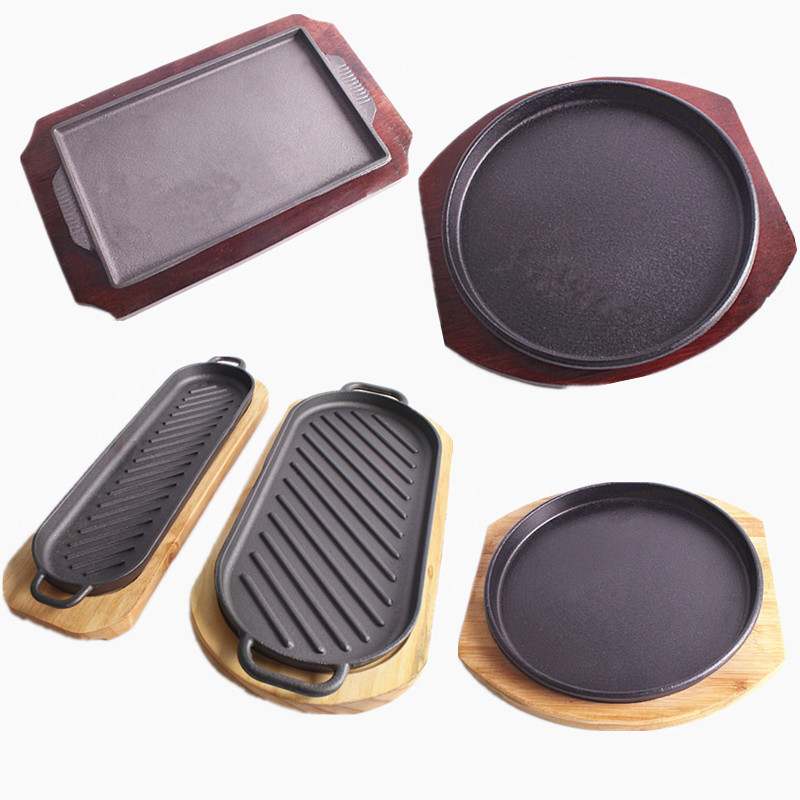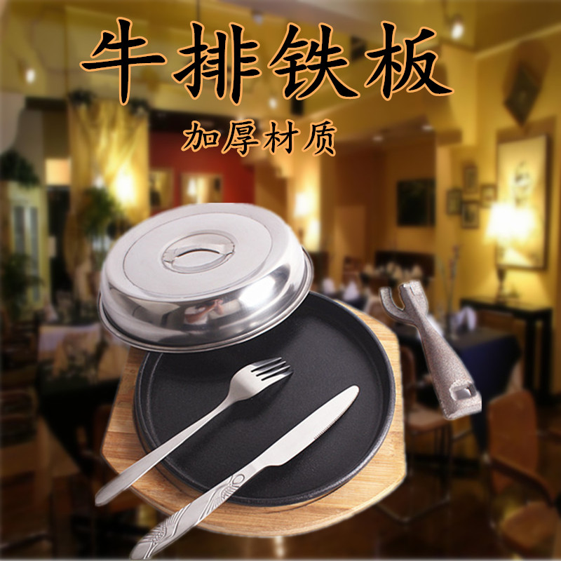 Round steak teppanyaki household grill plate Korean thickened cast iron steak plate non-stick pan cast iron plate barbecue plate