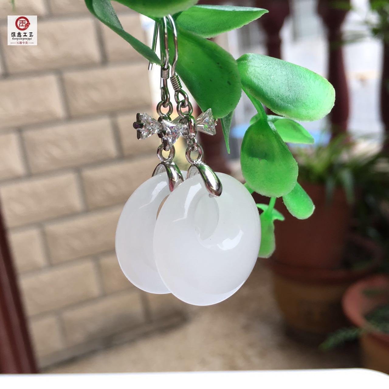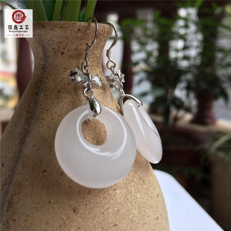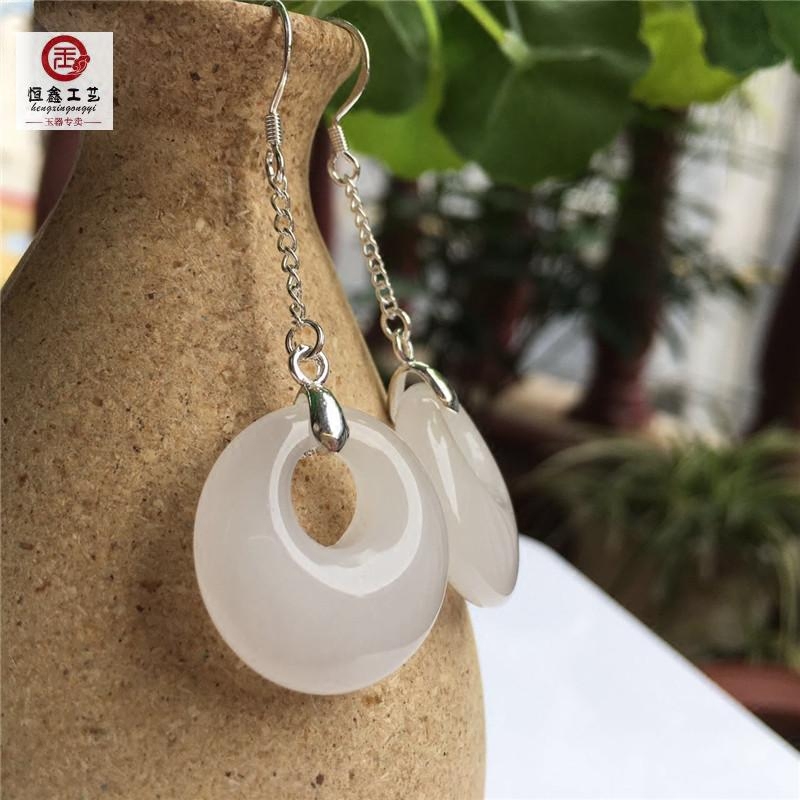 Xinjiang Baiyu Ping An Buckle Earrings Goat Grease Jade Pendant 925 Pure Silver Butterfly Gold Silk Jade Ring Earrings Brand New-Taobao