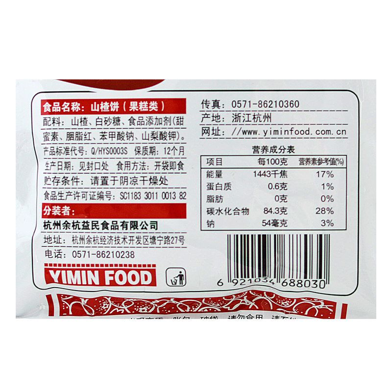 (Yimin) hawthorn cake 220g bagged casual snacks hawthorn sheet hawthorn products snacks (Shang ultra-identical)