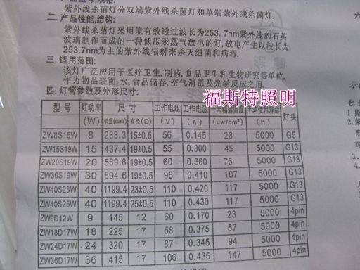 ZW15S19W Lamp 45CM Long ZW20S19W Lamp 60CM Long ZW30S19W Lamp 90CM Long ZW36S23W Lamp 1