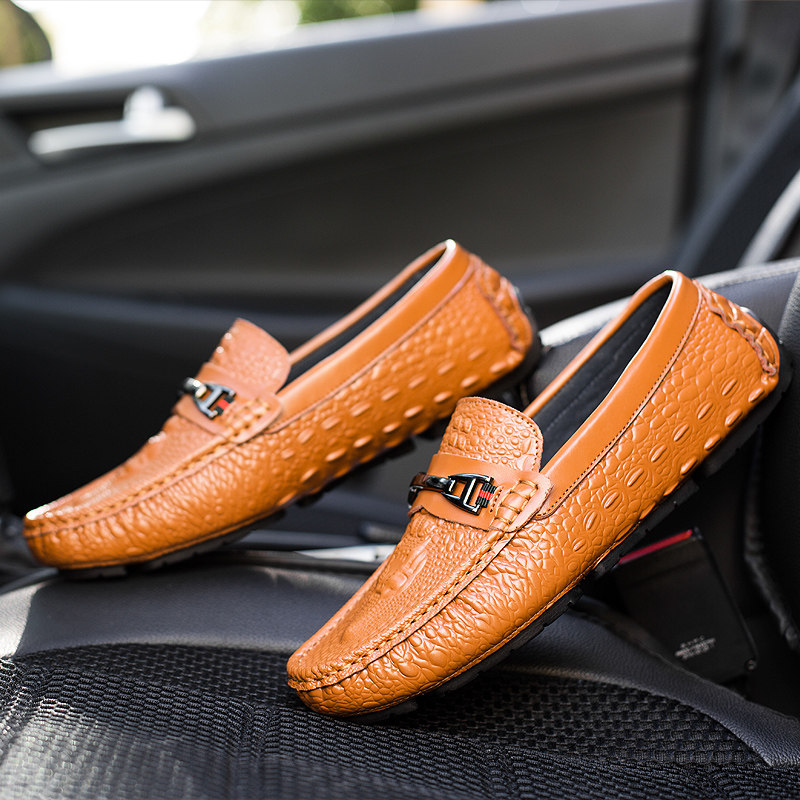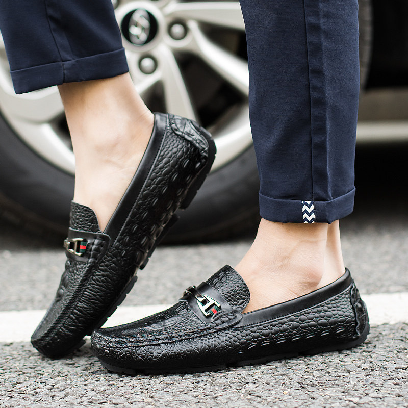 Dang Elaine Crocodile Bean Shoes Men's Set Foot Paint Leather Casual Leather Shoes Winter New Korean Version 100 Hitch Male Shoe Tide