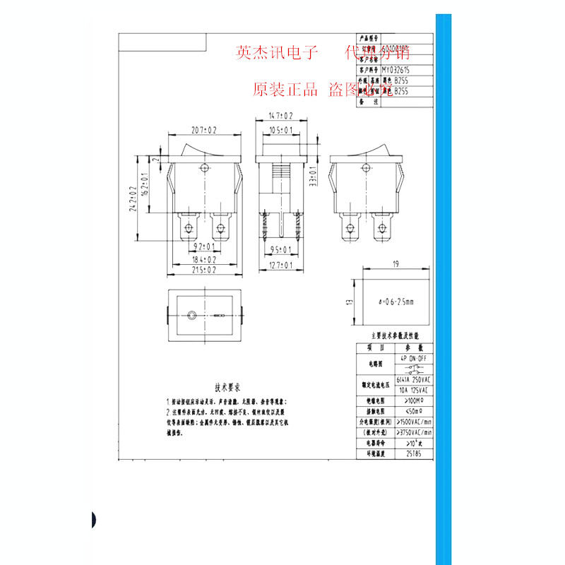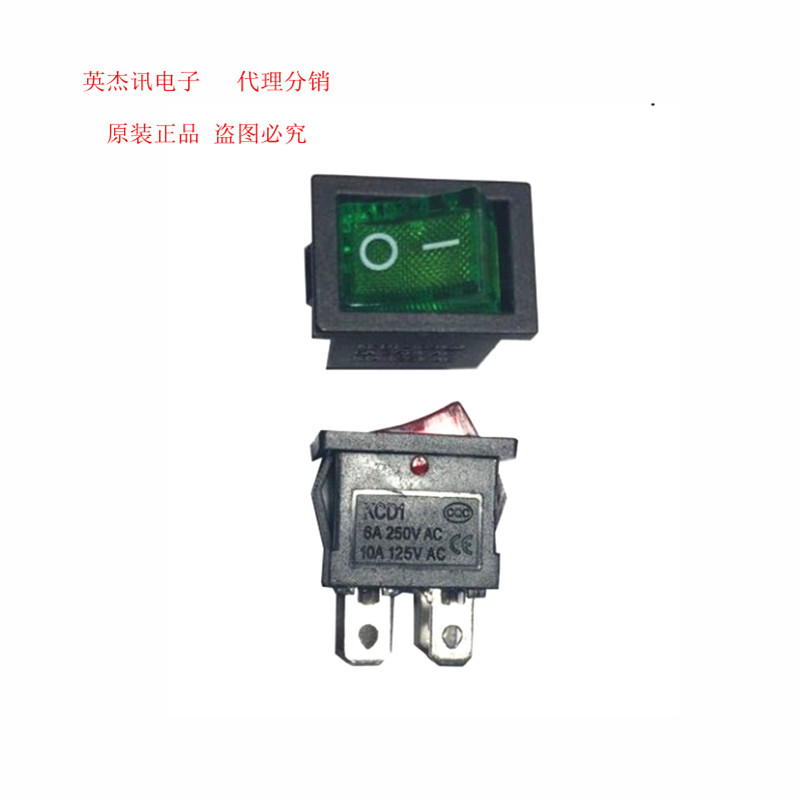 Rocker switch KCD1-104N red green 4 foot 2 gear with light power switch 6A 250V