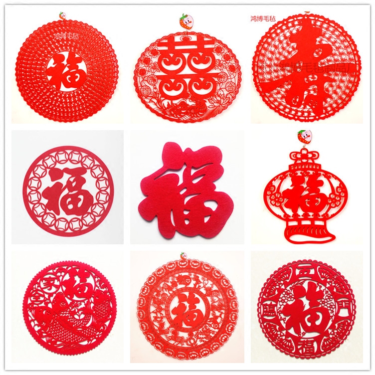 Fu word paste Qiao relocating for Chinese New Year Fucalligraphy door post Fu word window flower wall cloth applie for Spring Festival glass door post-cut paper