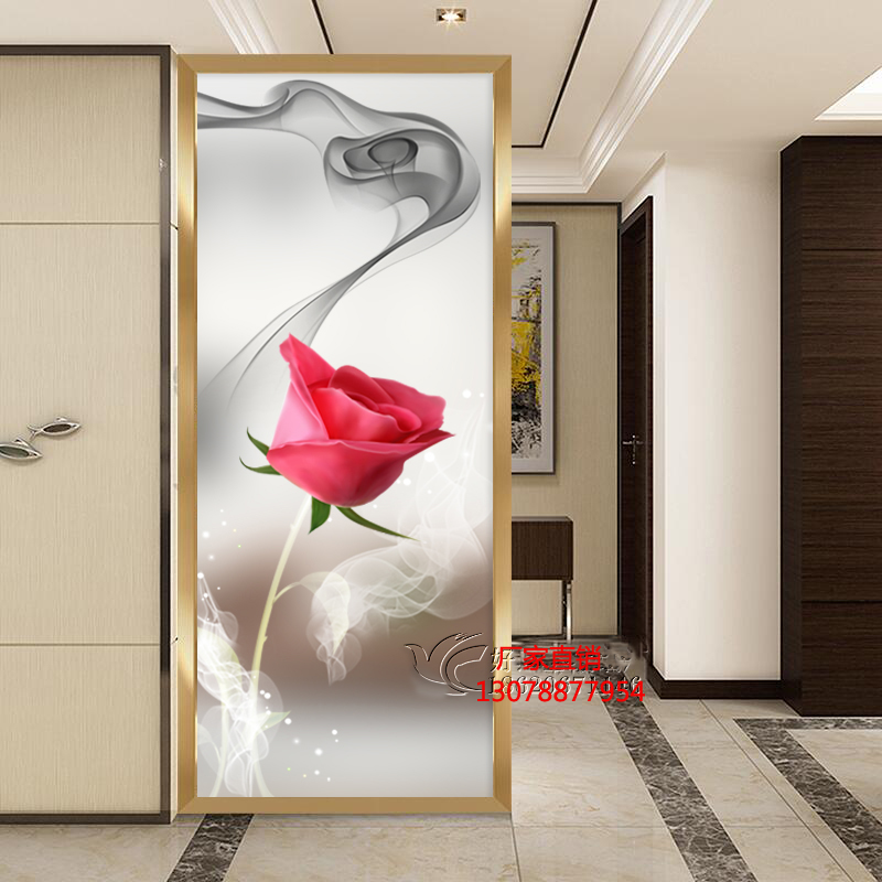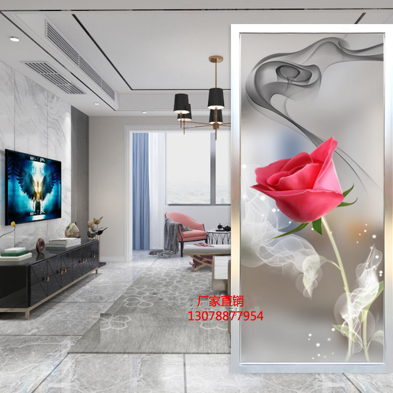 Light luxury simple tempered art glass partition screen entry porch shoe cabinet background wall frosted transparent rose