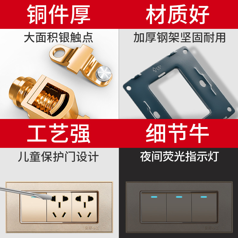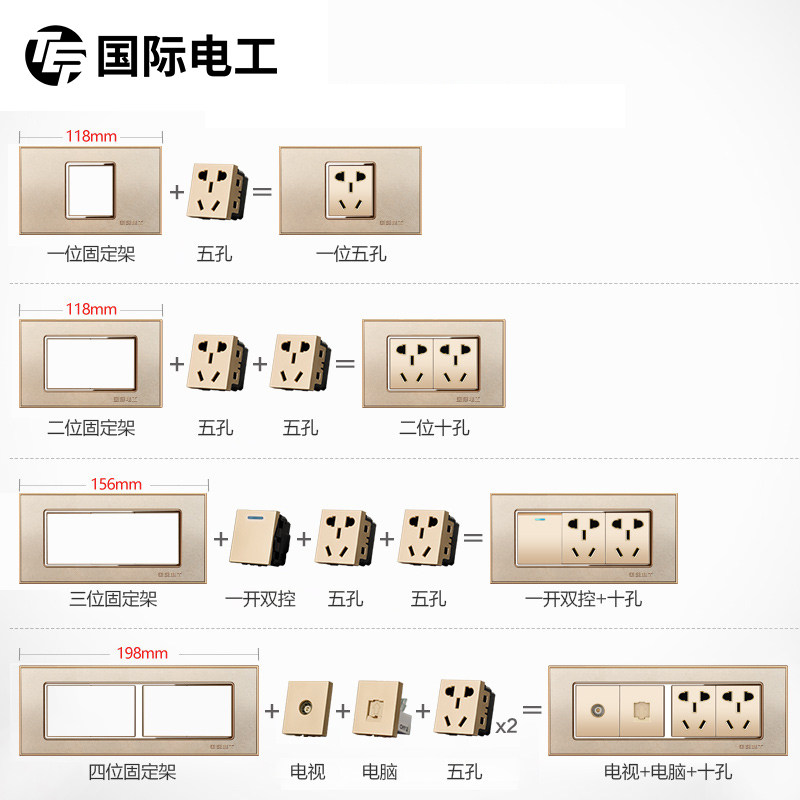 International Electrician 118 type household wall switch socket panel power supply 3D frosted gold four-position five-open switch