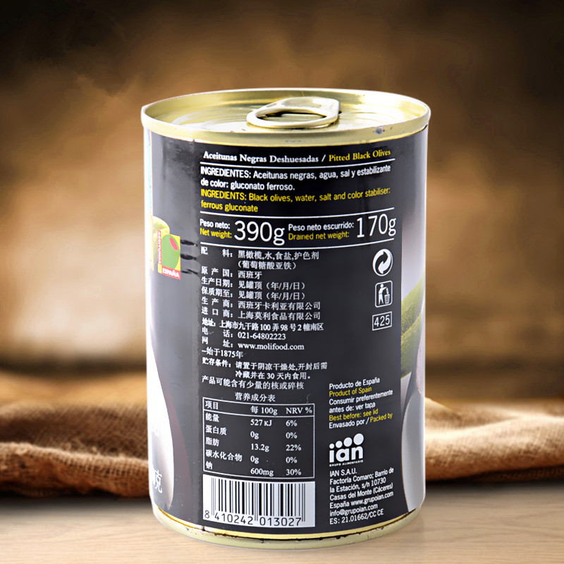 Spain imports Kalia without nuclear black olives, Capala to nuclear black water pizza baking raw material 390 grams