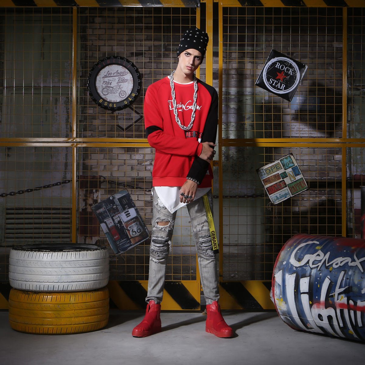 GENANX lightning wave brand sweater couple autumn new loose pullover Korean version of the trend of youth sweater