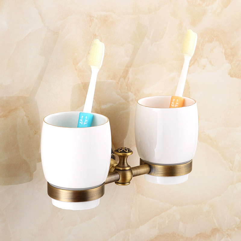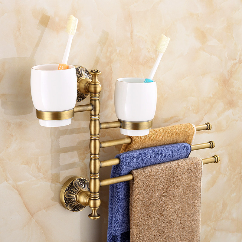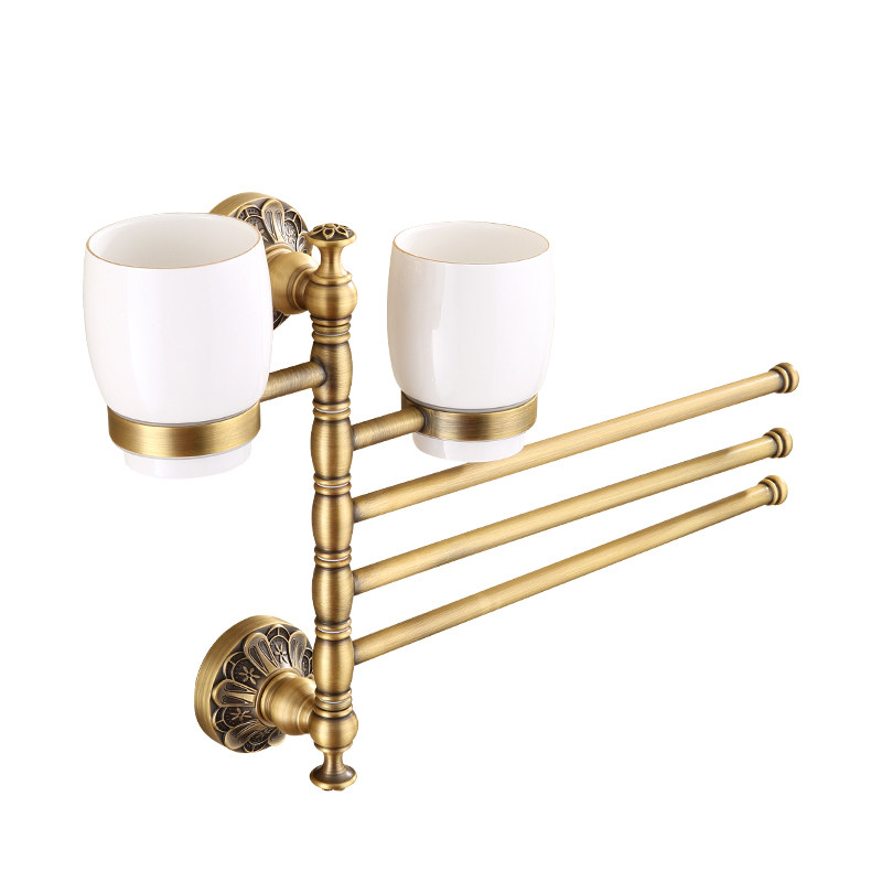 European style retro mouthwash cup holder towel rack Bathroom antique multi-functional toothbrush cup holder Rotating movable towel rail
