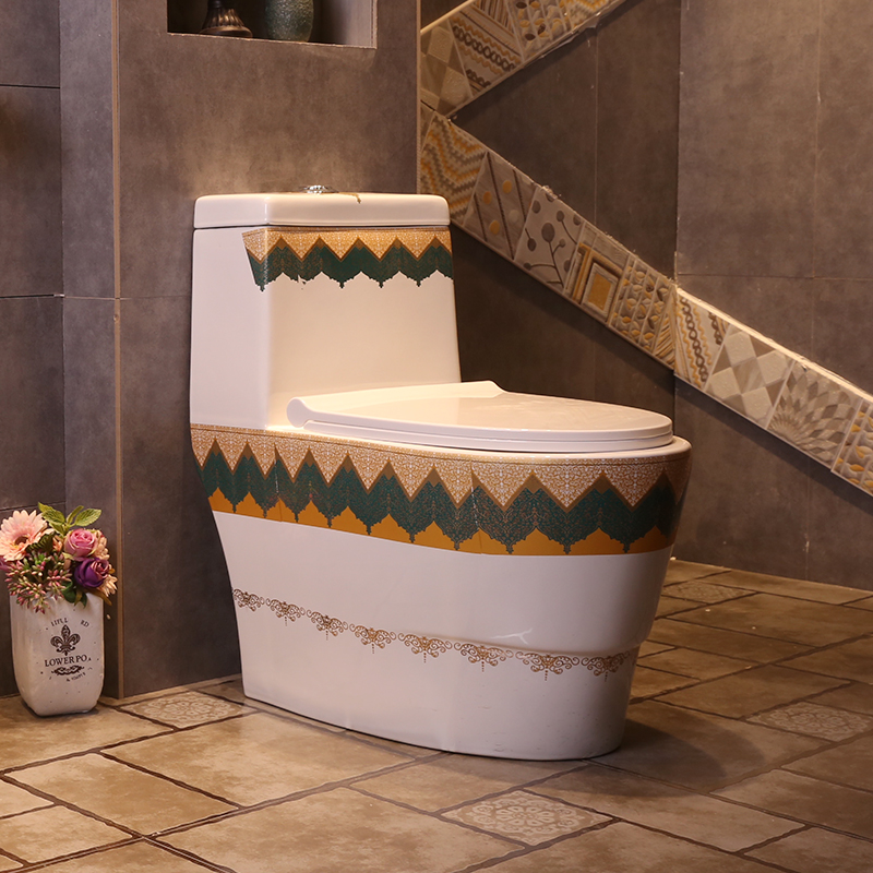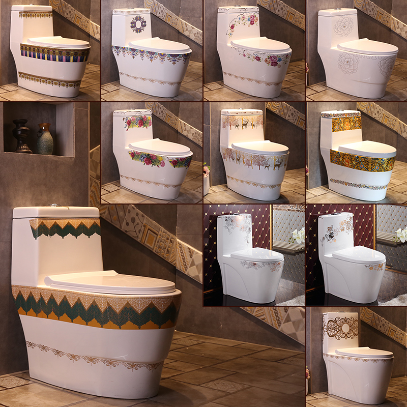 Jingqi Mediterranean Color Art Ceramics Toilet Household Makeup Room European Nordic Rainbow Suction Ordinary Toilet