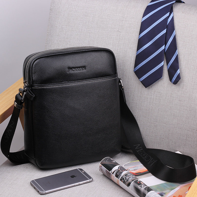 Leather men's bag men's shoulder messenger bag first layer cowhide bag business casual vertical small backpack hanging bag tide