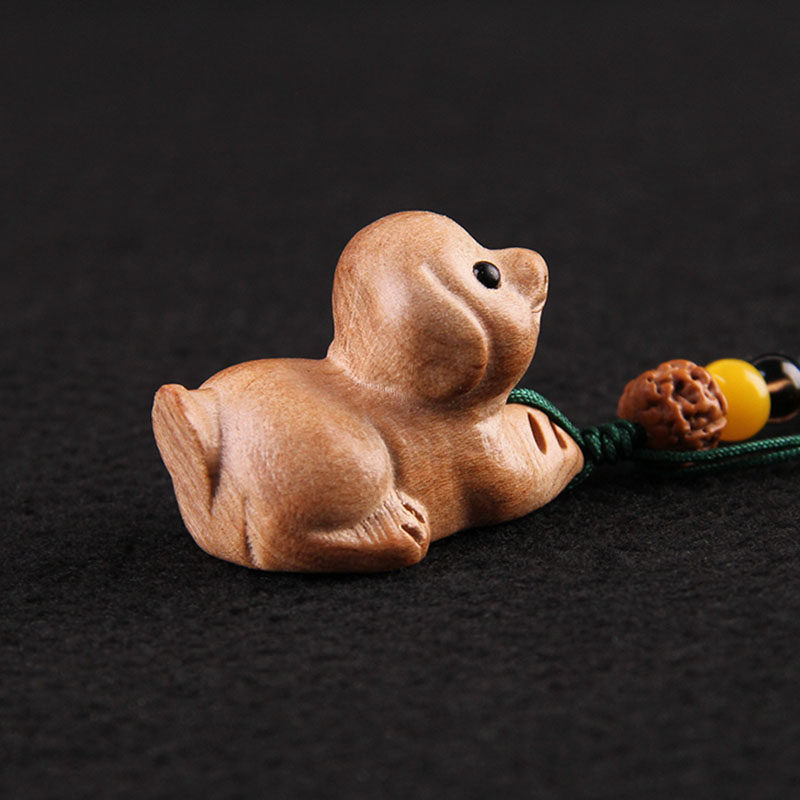 Taishan Cihang Ge peach wood dog keychain Peach Wood zodiac small dog pendant pendant Paint dog pendant