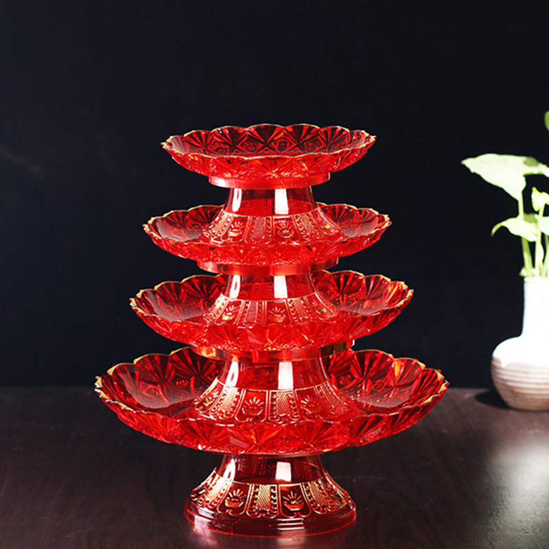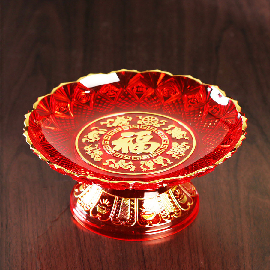 Crystal red offering plate Household God of wealth fruit plate Offering Buddha fruit plate Plastic melon seeds dried fruit plate Tribute plate fruit plate