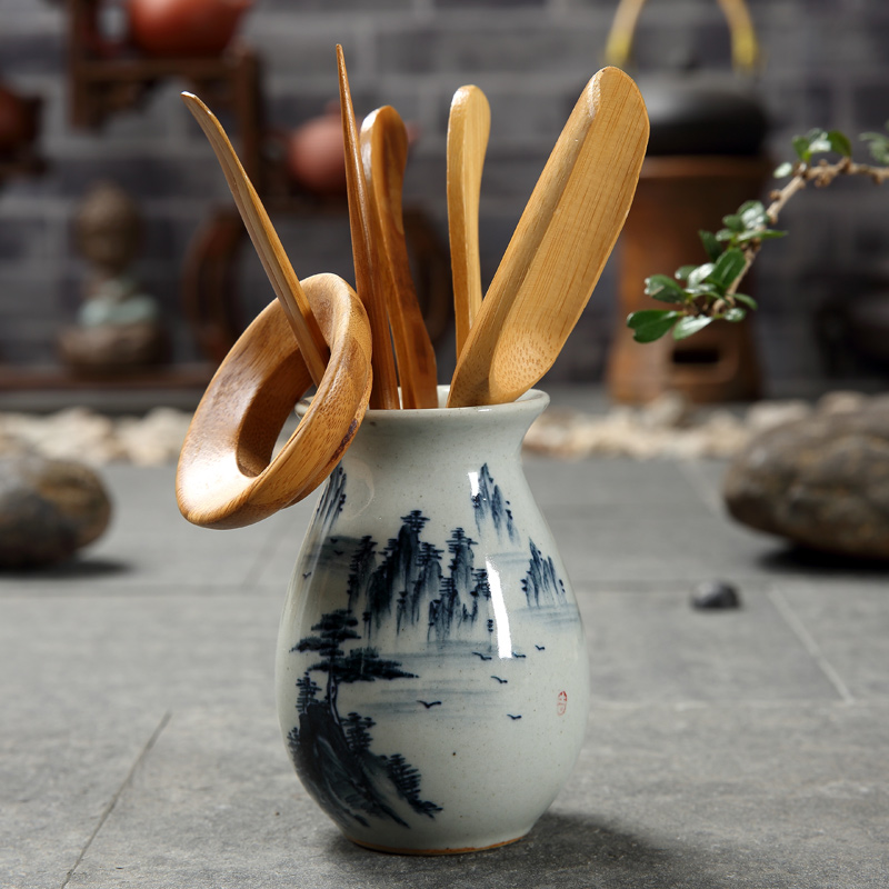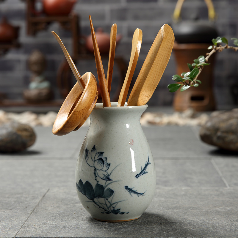 Antique tea ceremony six gentlemen set tea clip tea needle tea spoon combination hand-painted lotus landscape ice crack ceramic bottle base
