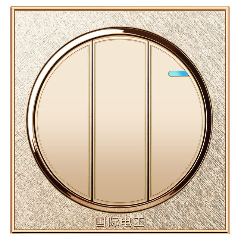 International electrician round switch socket panel 86 type champagne gold three-open light switch power supply three-open double control