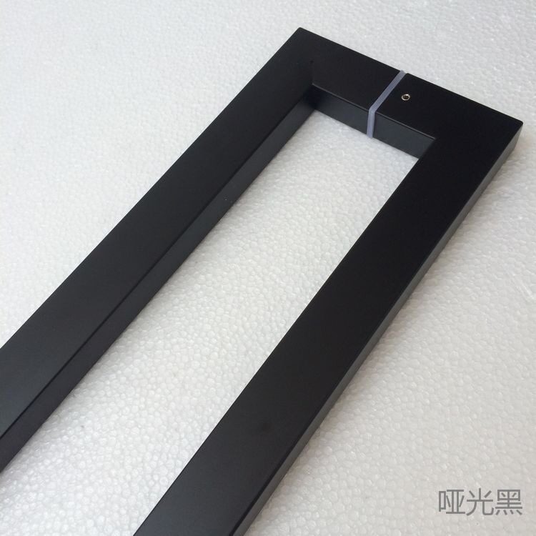 Glass door handle black square tube stainless steel large handle fireproof wooden door KTV handrail dumb black 1 2 meters 1 5 long