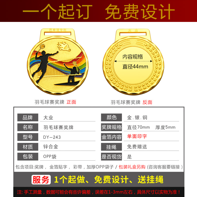 Badminton medal set for competition medal listing to make metal universal medallion Custom School Games gold medal