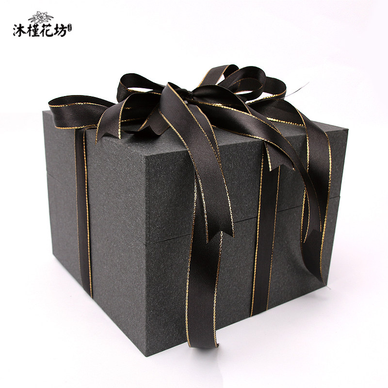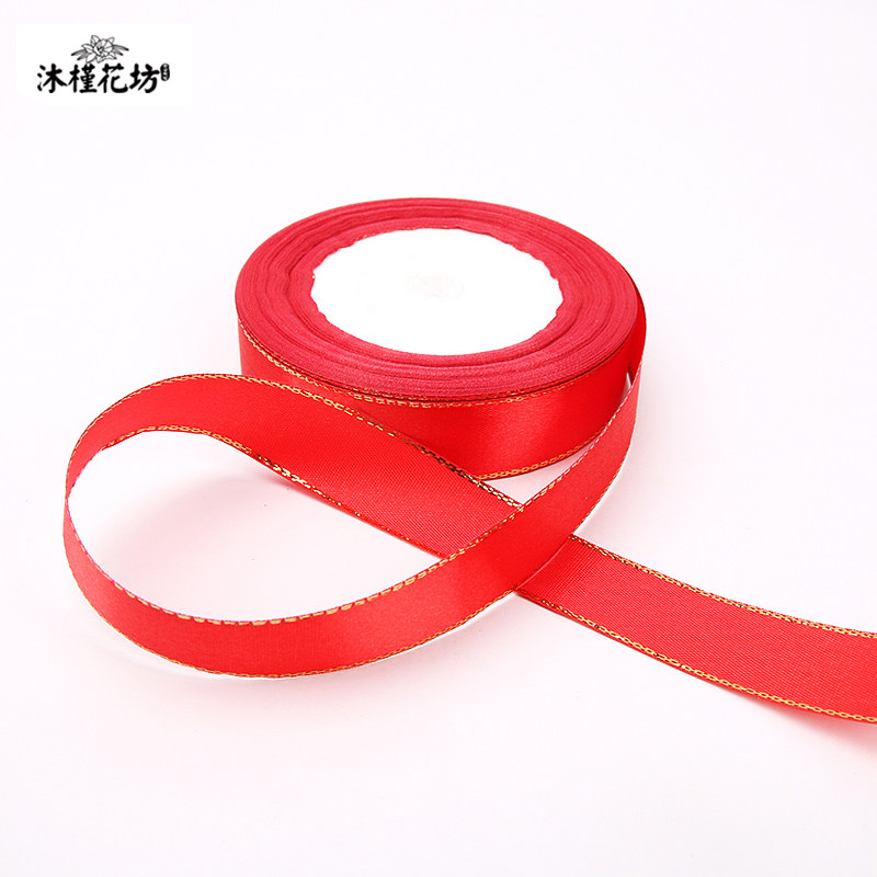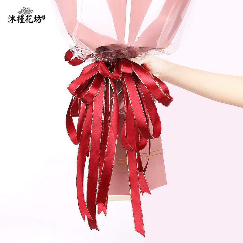 20mm double gold silk ribbon festival decorated butterfly box bundled with flower packaging boutique