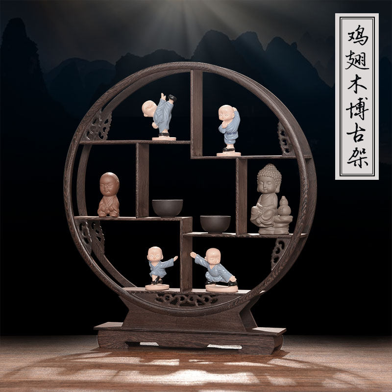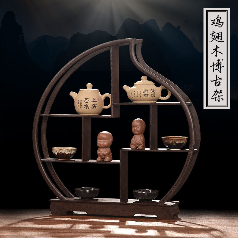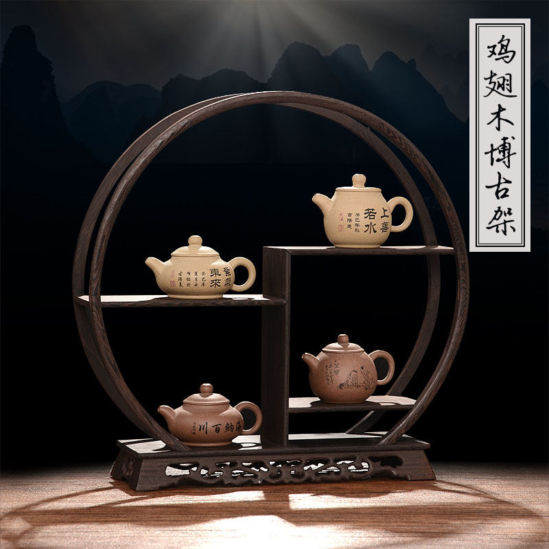 Teapot Tea Set Shelf Small Bou Rack Solid Wood Chinese Style Pendulum with Purple Sand Clay Pot show Chicken Wings Wooded Dorpaku
