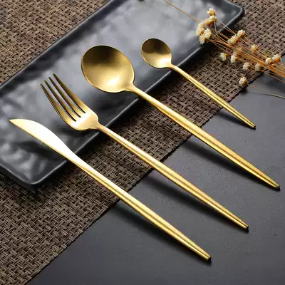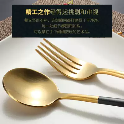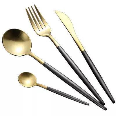 Coffee spoon(black handle gold head)1 main dining spoon(black handle gold head)1 main dining fork(black handle gold head)1 main dining knife(Black handle Gold head)1