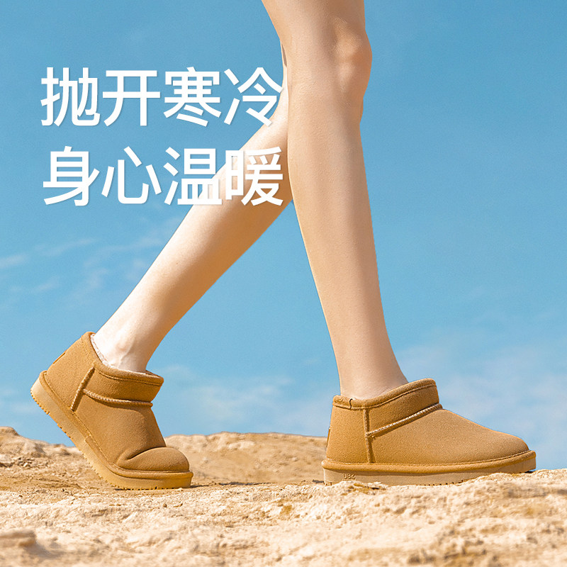 UBZ waterproof low-top snow boots women's one pedal 2022 new women's winter low-top boots plus velvet bread cotton shoes