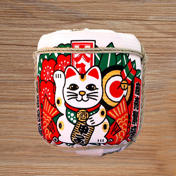 Day Style Decorated Wine Squatting Wine Barrel Japan Sushi Material Shop Furnishing Items Cherry Authentic to Fodor Pattern Clear Liquor and Wine Squatting