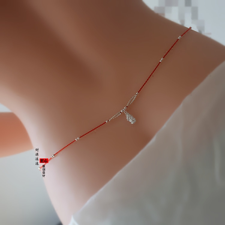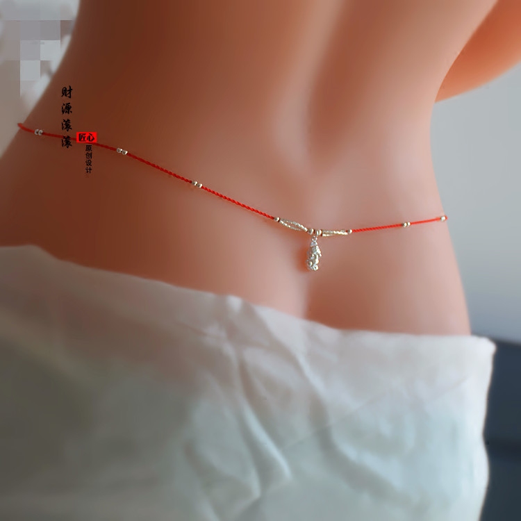 Great King Leopard Leopard for men and women Suzuki Red Rope Customized Woman Superior Sentimental Sensation Hot Girl Belly Leather Dance Pure Silver Waist Necklace