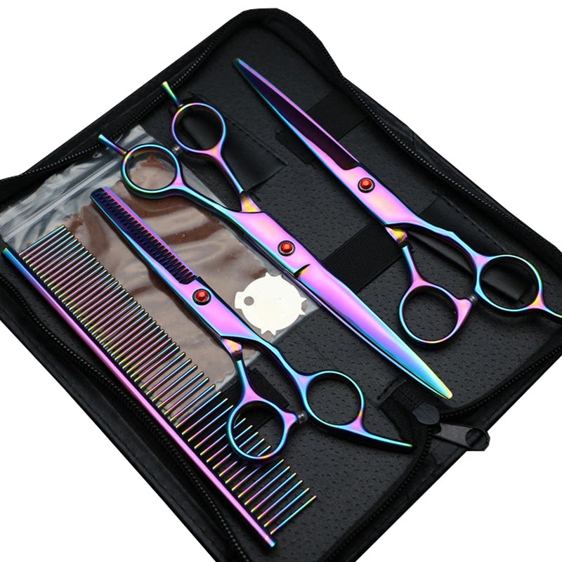 Pet Beauty Special 7 Inch Straight Cut Pet Beauty Special 7 Inch Bend Cut Pet Beauty Special 6 Inch Tooth Cut Suit (Straight Bent Tooth Cut Steel Comb and Scissors Bag)