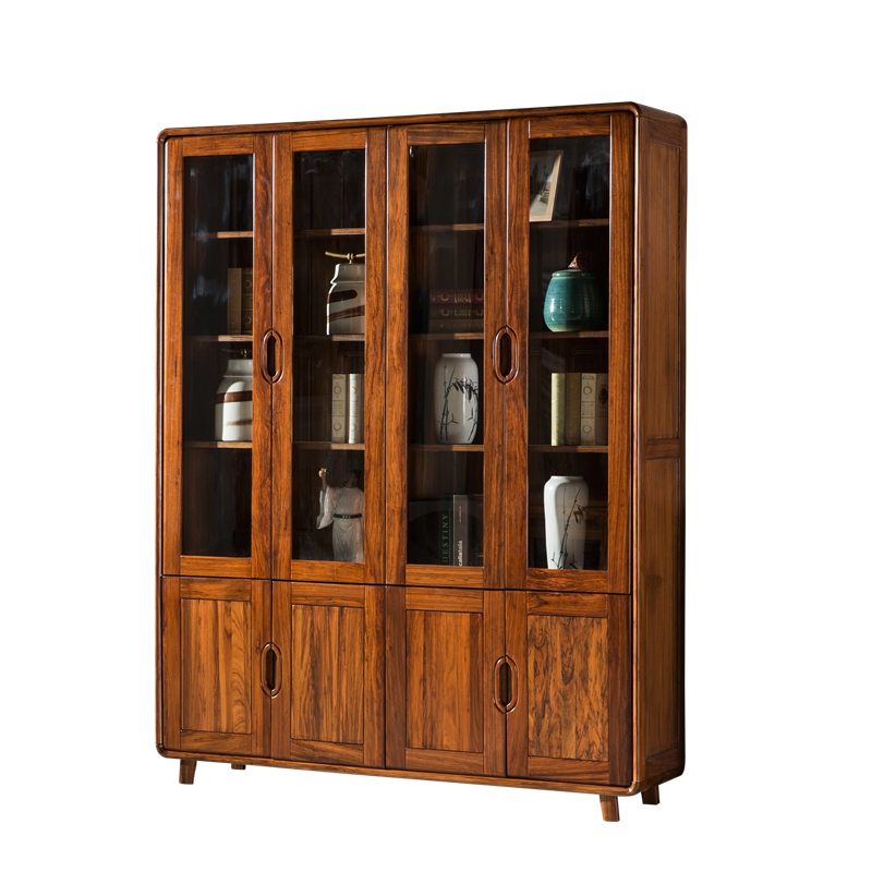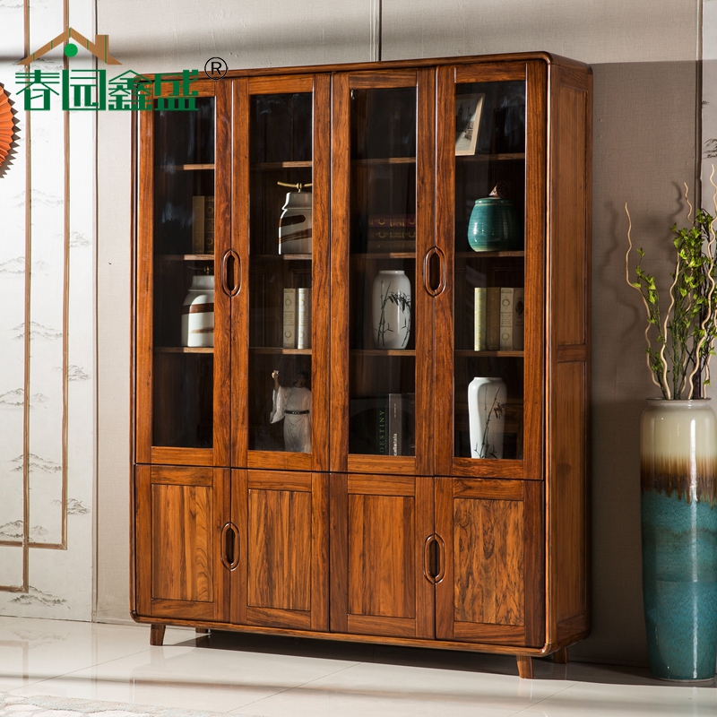 Pure all-solid wood wood four-door bookcase cupboard Wine cabinet Chinese Simple modern study furniture