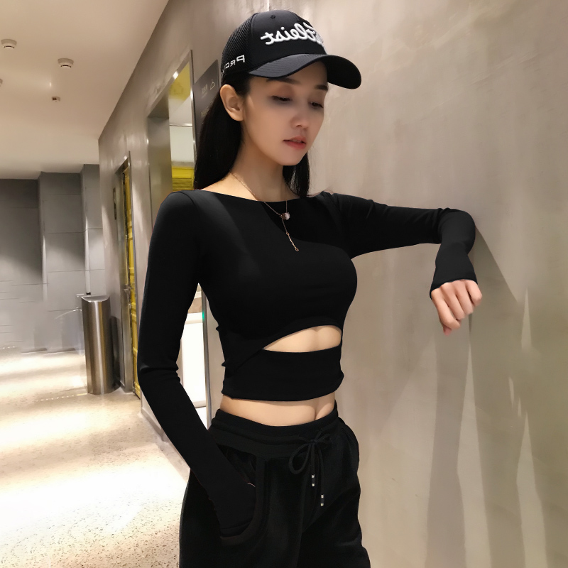 Net Red Dew Horse Chia Slim Fitness Long Sleeve Sports Hooded Women Sashimi Running Yoga Conserved Bottom T-shirt Spring And Autumn