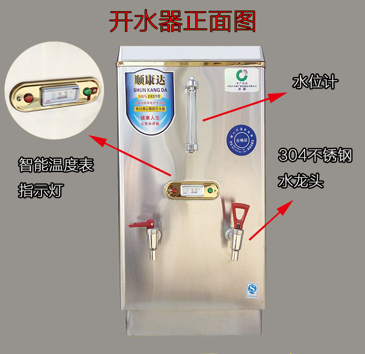 Shunkangda fully automatic large-capacity 304 stainless steel commercial water boiler anti-dry heating electric heating insulation water boiler