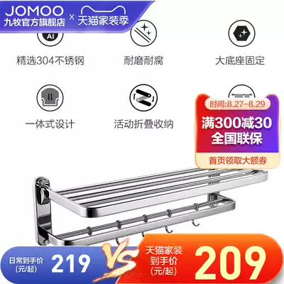 Jiumu official flagship store Stainless steel bathroom pendant bath towel rack Towel rack powder room rack foldable
