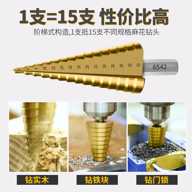 Triangle shank step drill Step drill Pagoda drill Reamer Steel plate iron plate Aluminum plate drilling machine Drilling 4-32