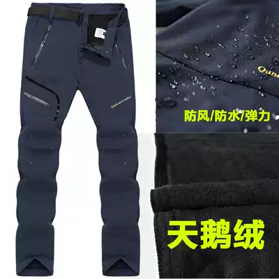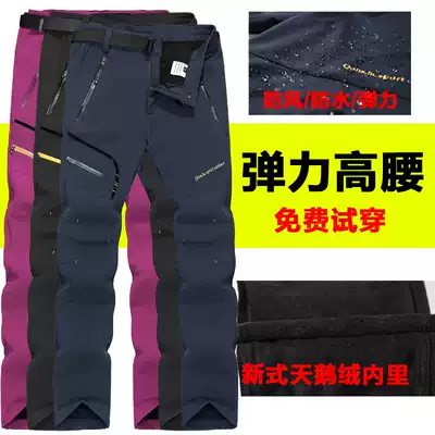 Outdoor assault pants Women Men's soft shell windproof waterproof and warm waist climbing pants elastic loose and velvet thickened winter