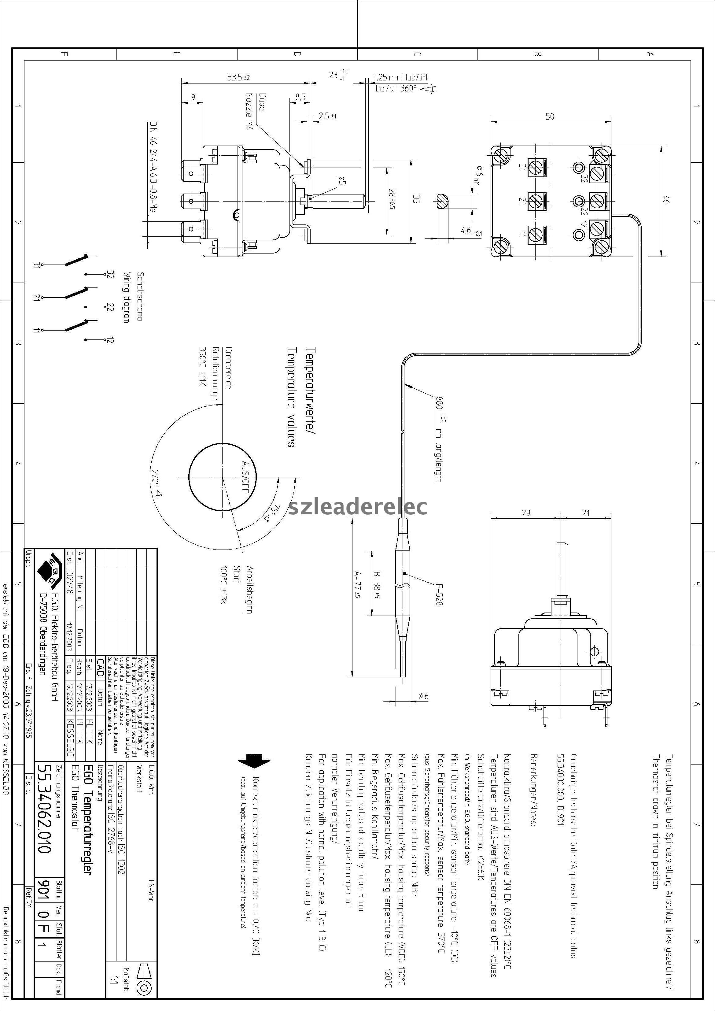 German EGO three-phase thermostat 55 34062010 Adjustable temperature 350-degree three-phase 380V5 more
