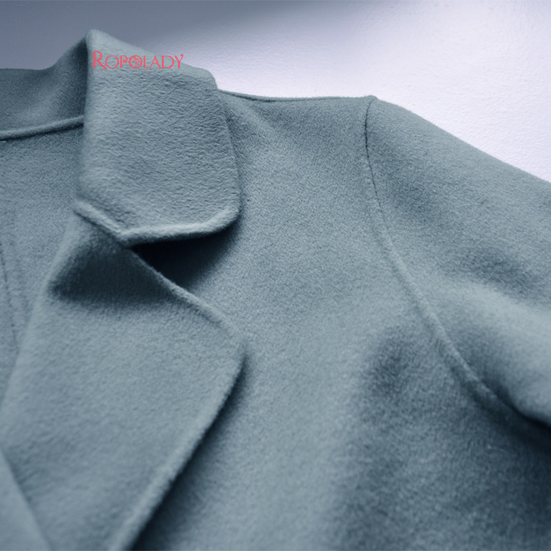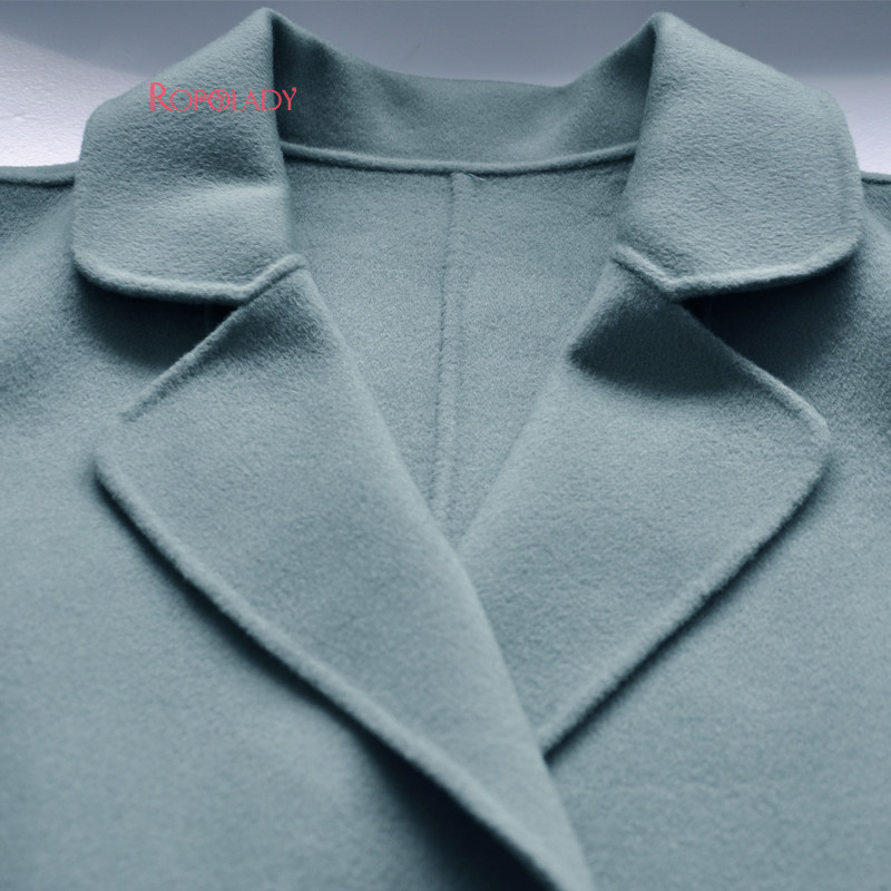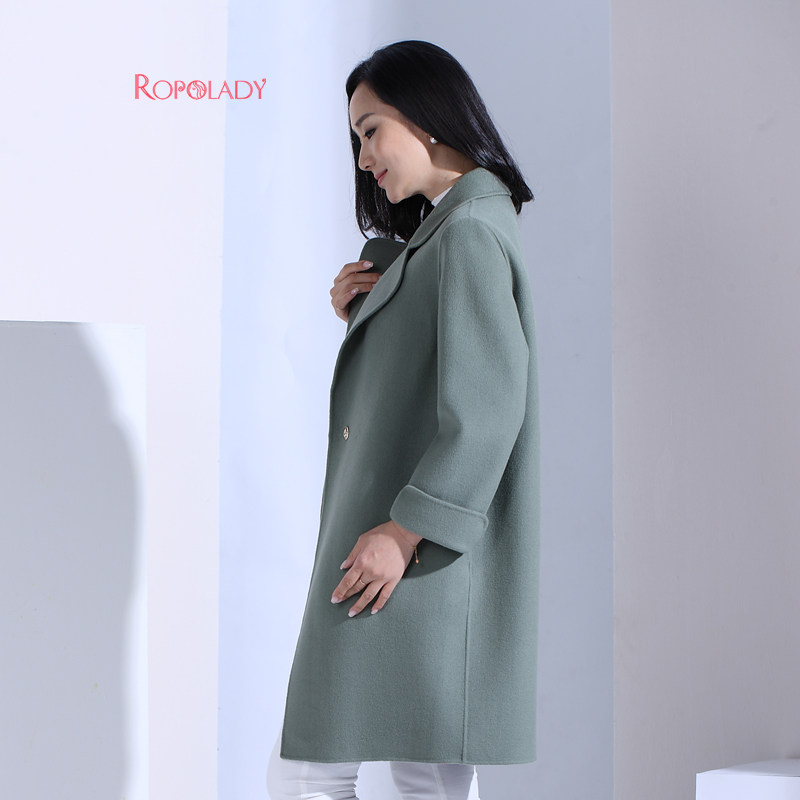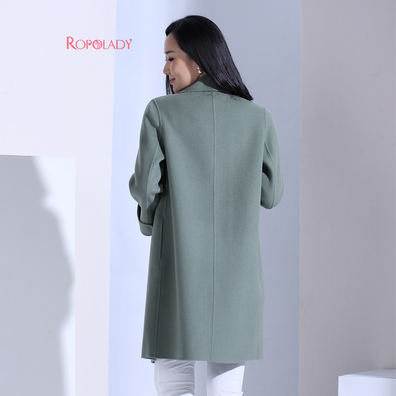 Fat Wife Great Size Dress Fashion Autumn Winter New Pint Green Flip collar Long-sided wool coat 417226310