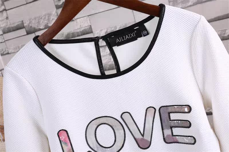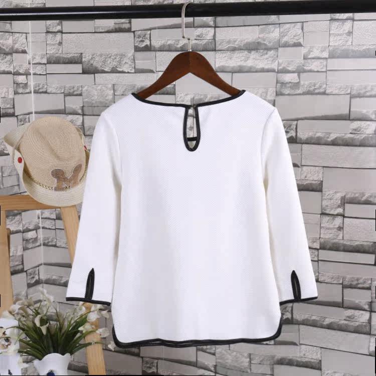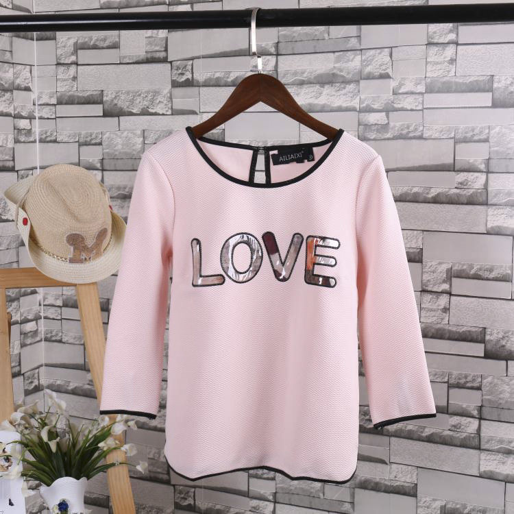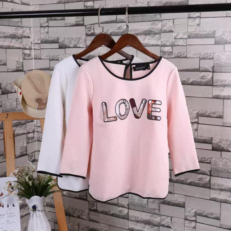 T-shirt autumn new three-quarter sleeve Korean version women's all-match top solid color collage letter bottoming shirt J 5-2