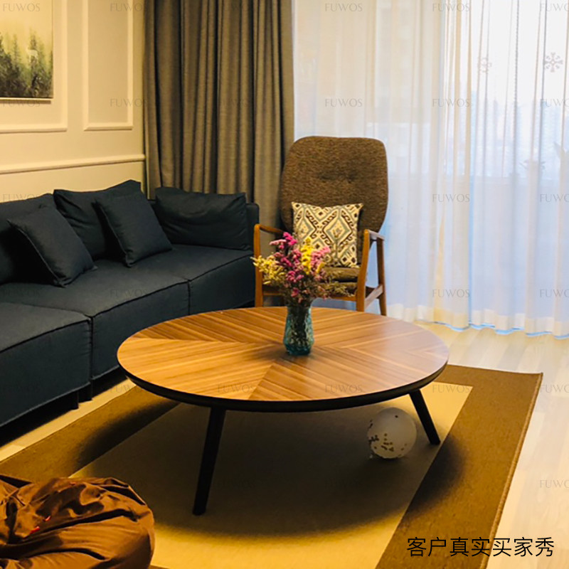 Italian small apartment Modern minimalist combination creative Walnut round Nordic living room Designer fashion coffee table