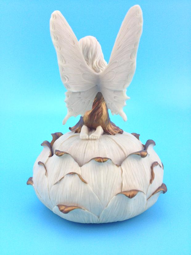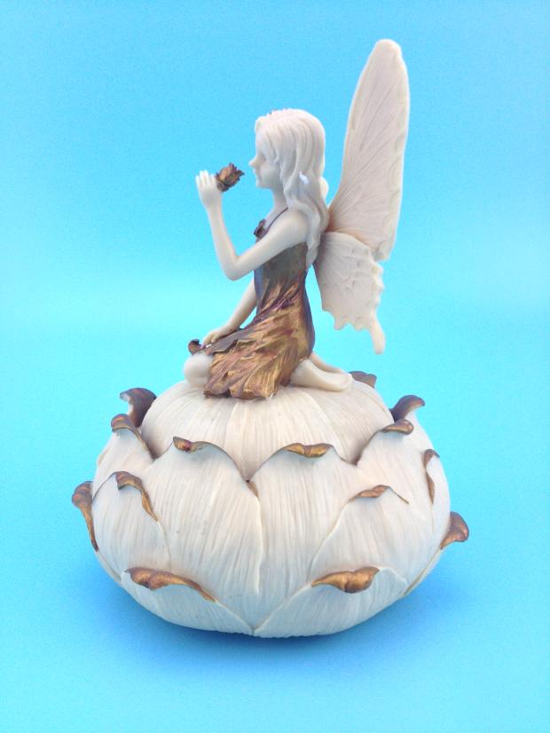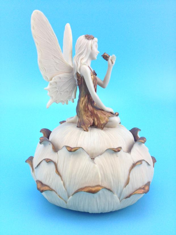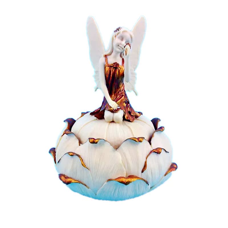 (Veroni European craft gift decoration)Jewelry box Jewelry box Girl kneeling position left hand holding flower desktop decoration