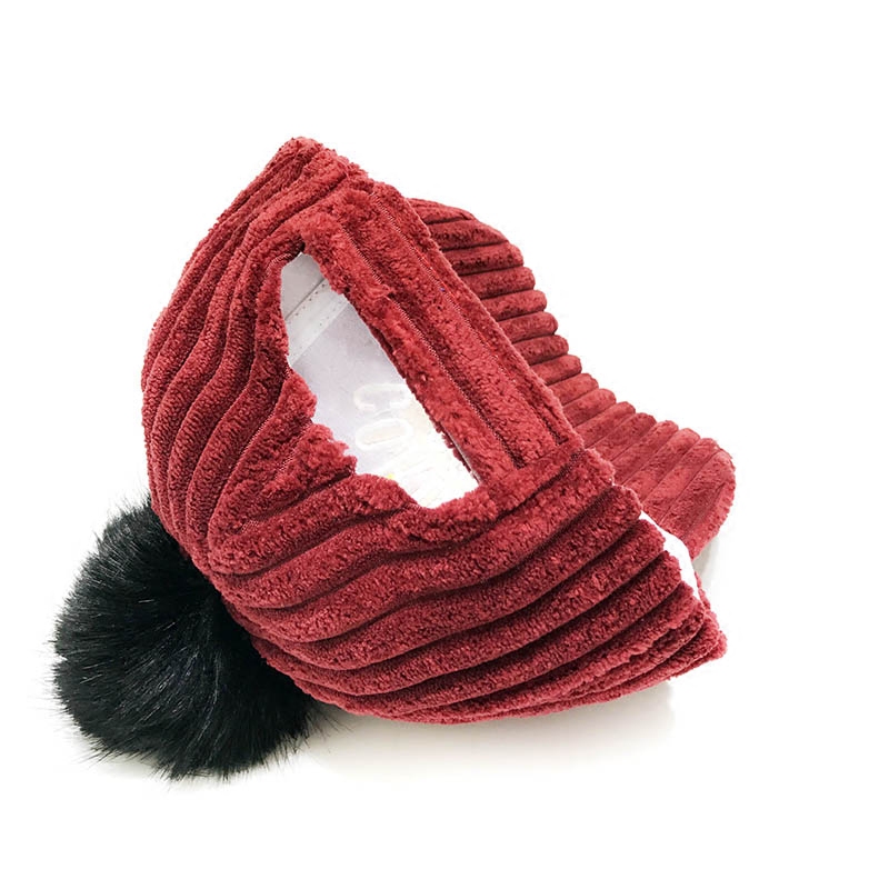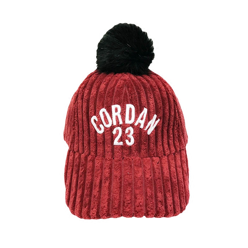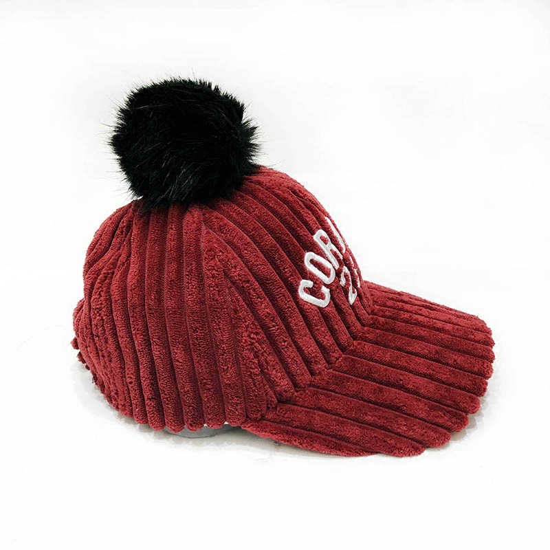 Peaked cap parent-child autumn and winter children's baseball cap corduroy letter embroidery big fur ball plush cap warm hip-hop hat