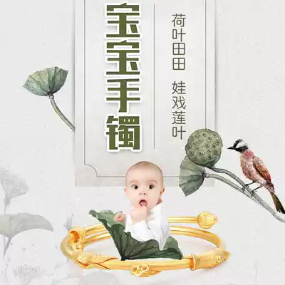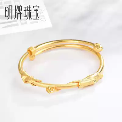 Ming brand jewelry gold bracelet gold lotus leaf baby pull bracelet baby gold bracelet gift AFJ0009