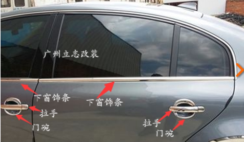 02-10 PassatB5 4 lower window bright strips 4 collars, 4 lower window bright strips, 4 fuel tank cover stickers, a door bowl set, a set of 4 threshold bars, a set of 4 wheel eyebrows, a set of 4 handles