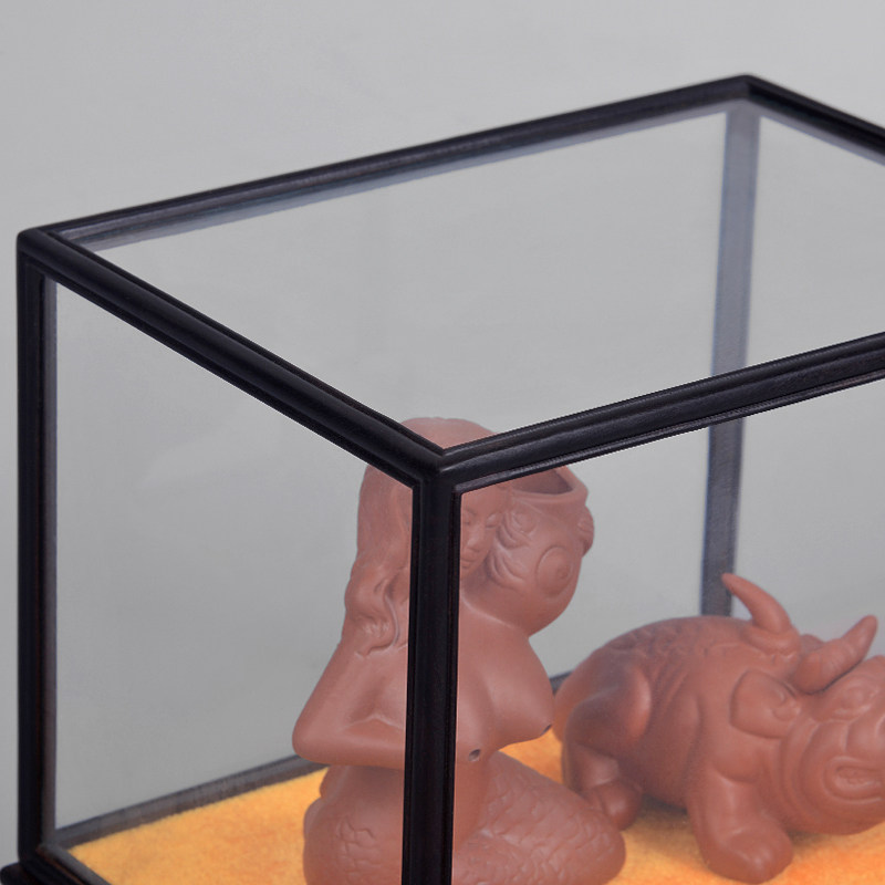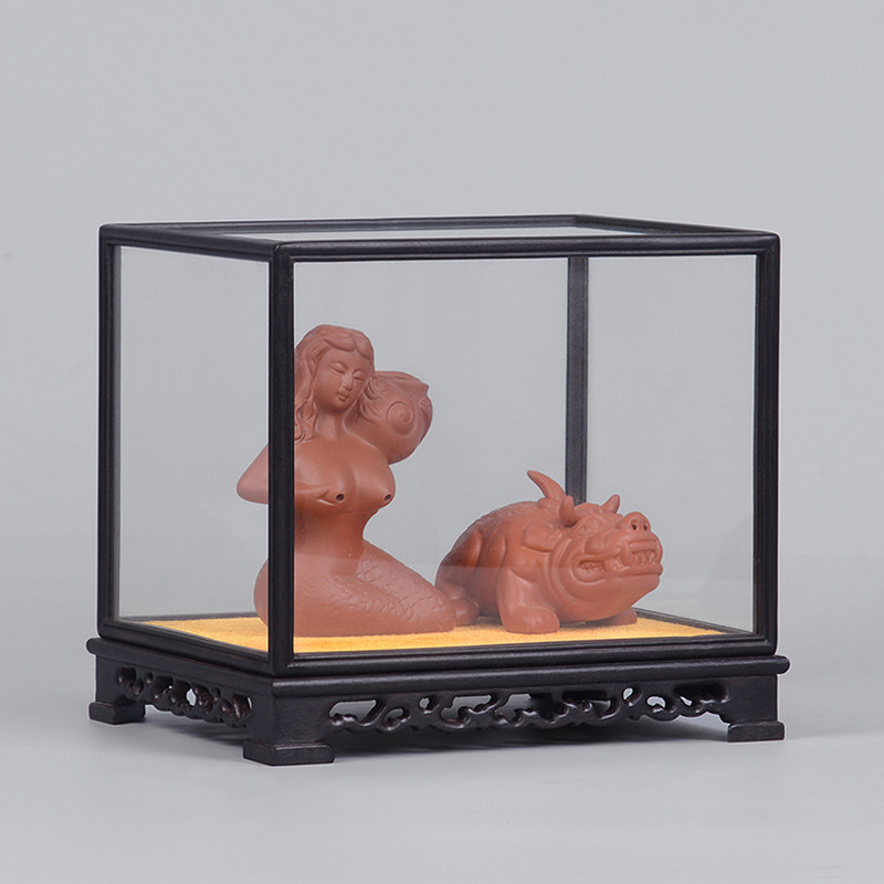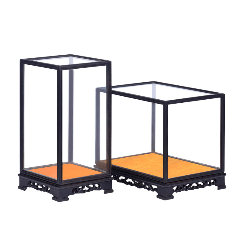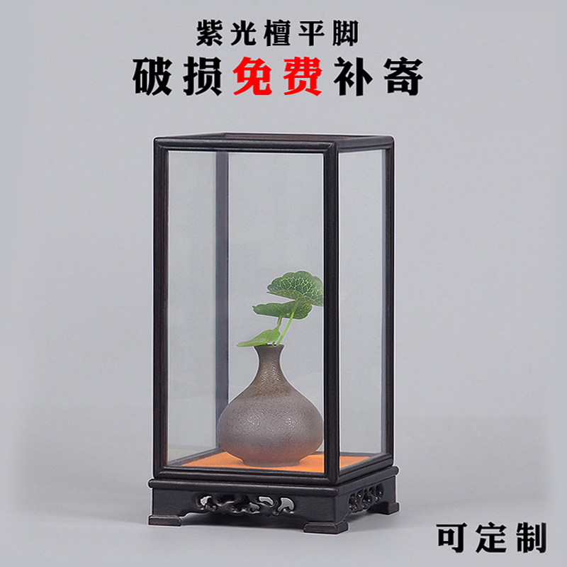 Mahogany carving purple sandalwood Buddha statue base carving craft gift decoration glass cover ebony display dust cover solid wood decoration