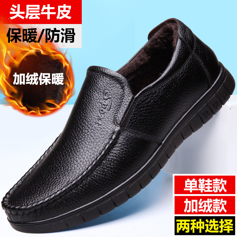 Winter Gush Leather Shoes Man Genuine Leather Casual Middle Aged Dad Shoes Warm Soft Bottom Non-slip Grandpa Shoes Old Man Cotton Shoes