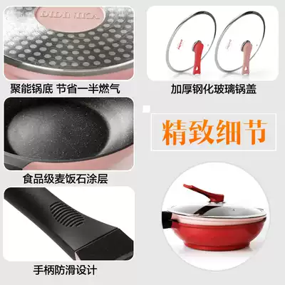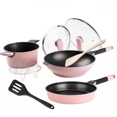 Pink wok Pink soup pot Free gift Red wok Red soup pot free gift Blue wok Blue soup pot free wooden shovel steaming rack Pink 3 pieces fried soup frying free small leakage shovel Wooden shovel steaming rack Red 3 pieces fried soup frying