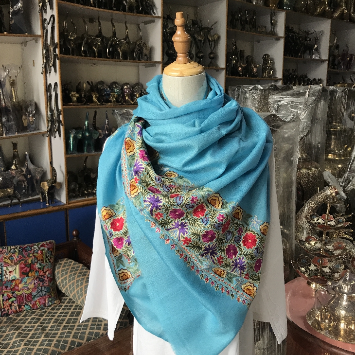 Nepal Indian Kashmir cashmere scarf shawl machine embroidered rice white