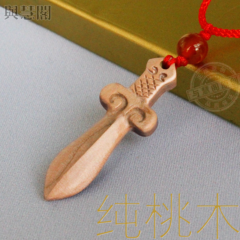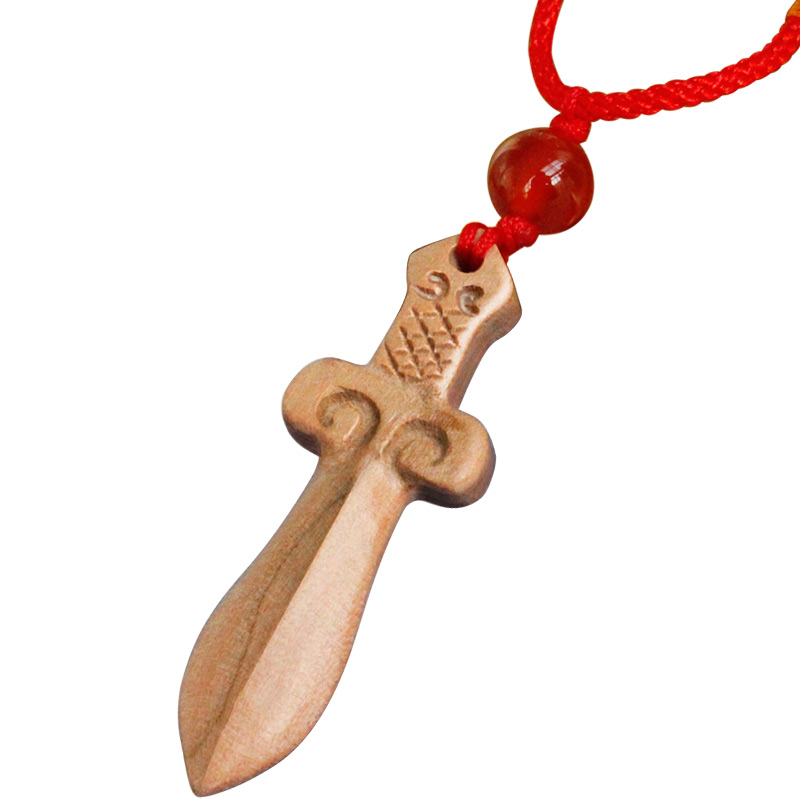 Peach wood sword necklace pendant pendant baby baby adult carry-on red rope safe year mascot