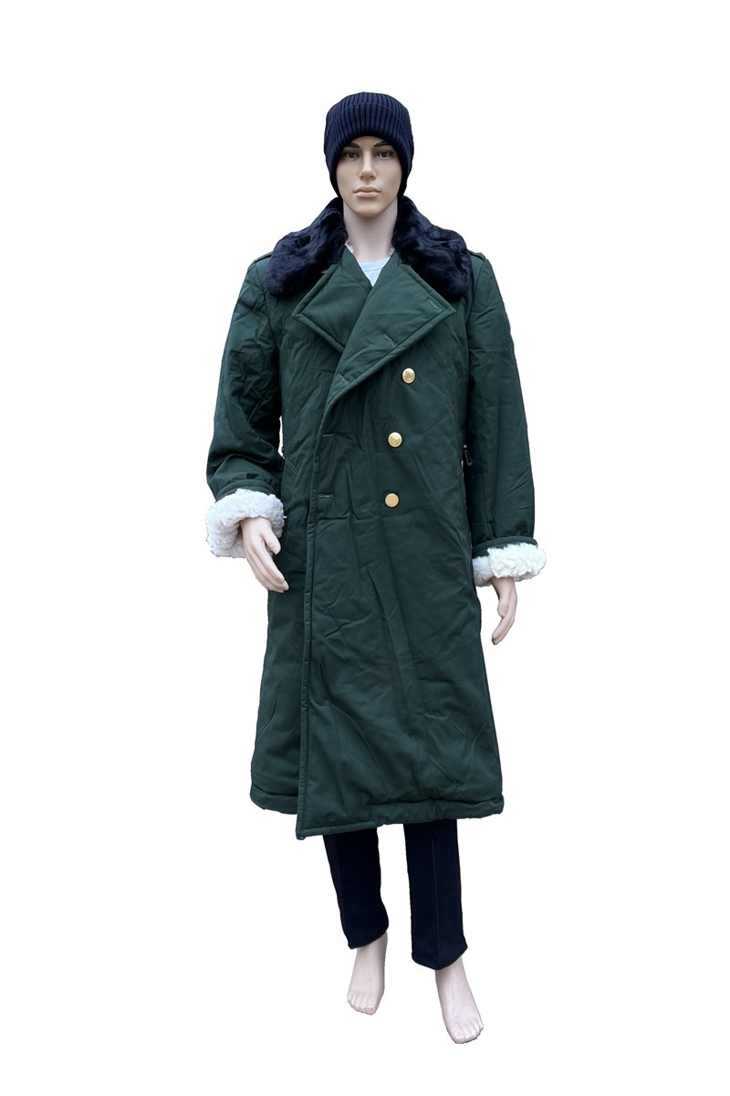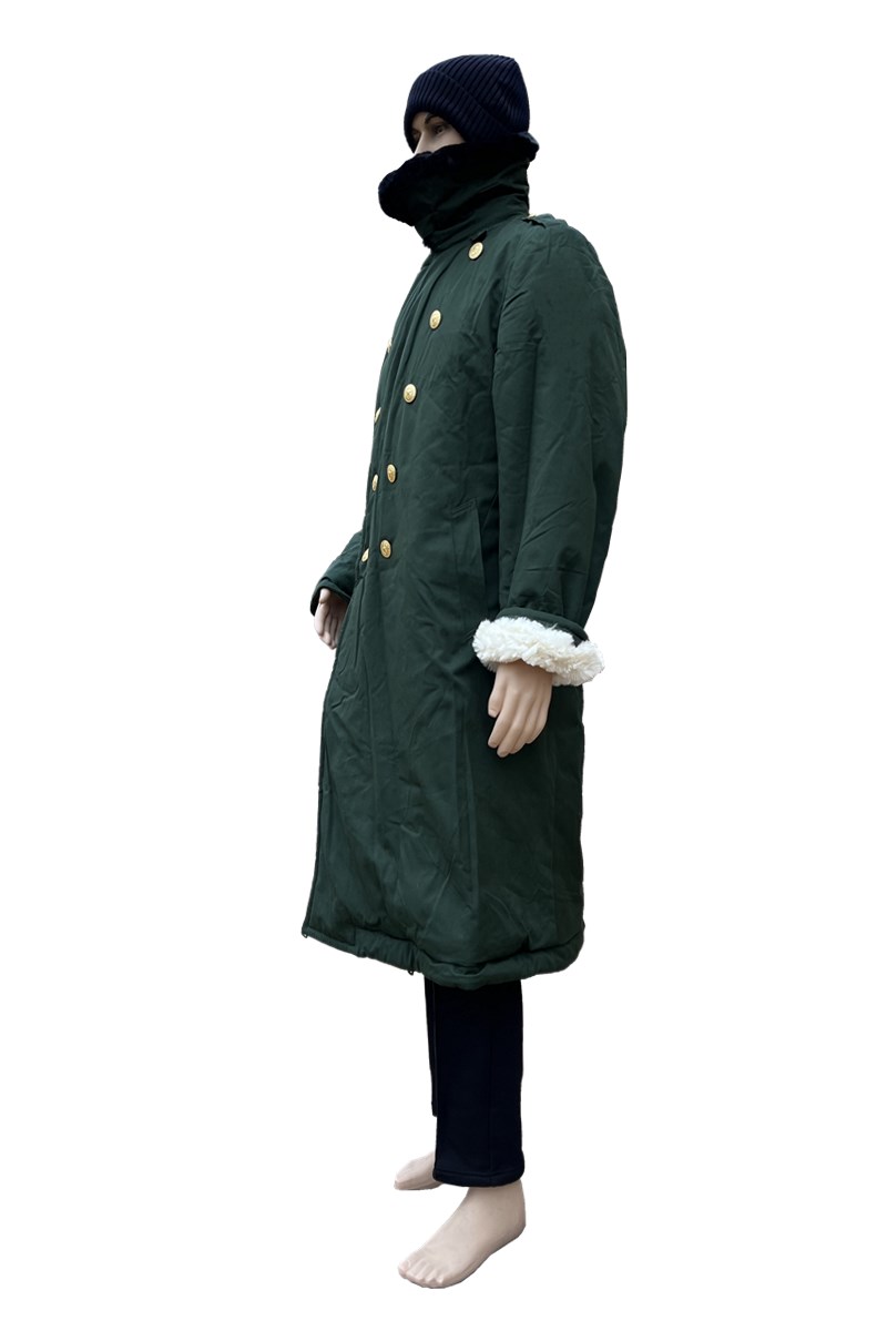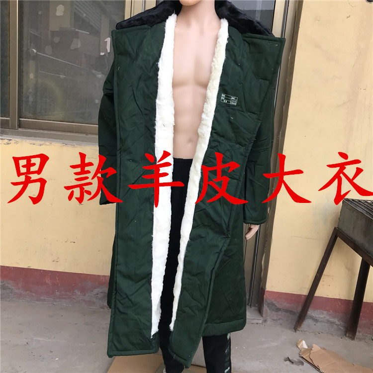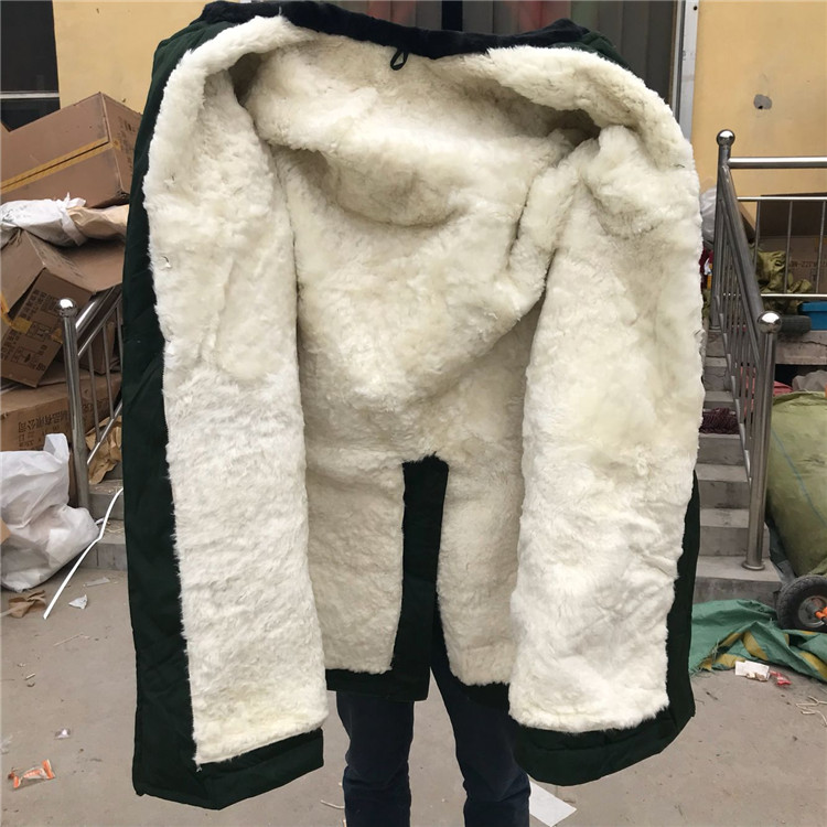 Men's autumn and winter pure color warm and cold-proof outdoor pendulum, long distance moving brick double-row buttoned long version of green sheepskin coat